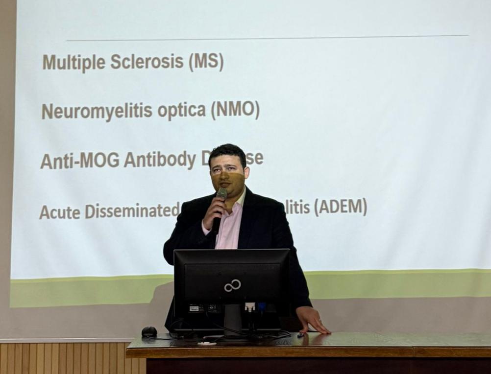 The lecture was titled From Symptoms to Scans: Understanding Demyelinating Diseases in Practice and was delivered by Dr. Qais Al-Saadi and Dr. Alaa Ibrahim, in the presence of faculty members and medical students.