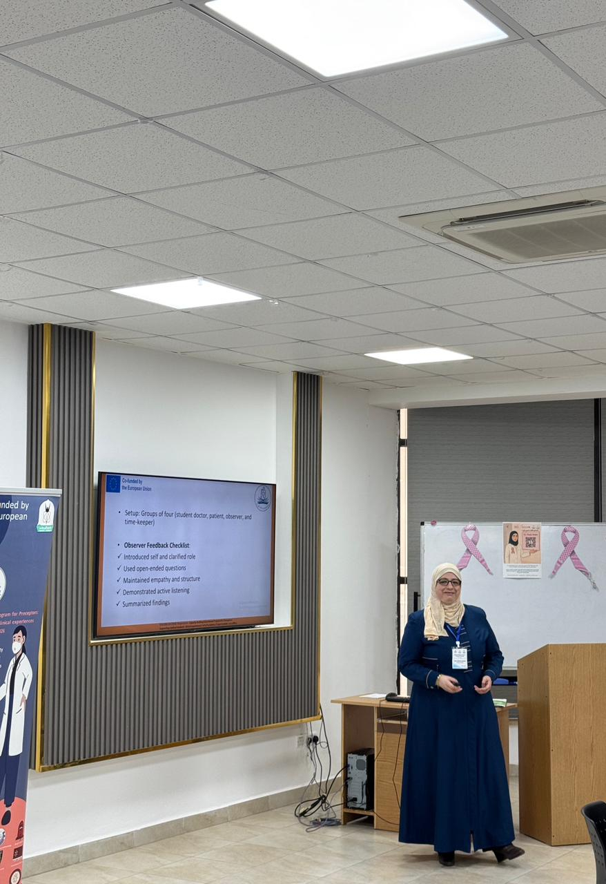 جاءت الورشة ضمن مشروع بناء القدرات للمدرسين السريرين (Capacity Building for Clinical Preceptors) والممول من الاتحاد الأوروبي.