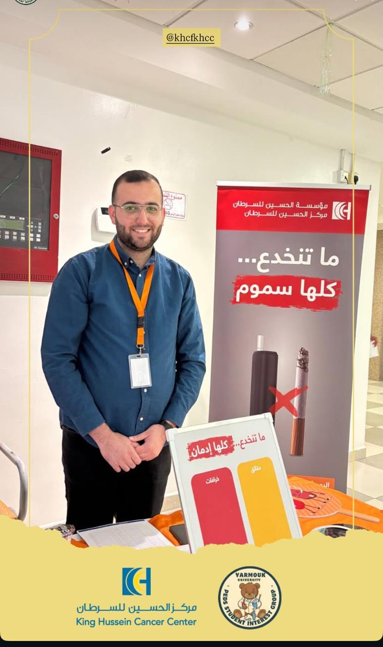 نظّم فريق الطلبة المهتمين بطب الأطفال (PSIG) في كلية الطب – جامعة اليرموك، وبالتعاون مع مؤسسة الحسين للسرطان، يوم الأحد 21/09/2025 حملة توعوية حول سرطان الأطفال في مستشفى الأميرة رحمة التعليمي للأطفال، وذلك بإشراف الدكتورة أسيل الغرايبة.
